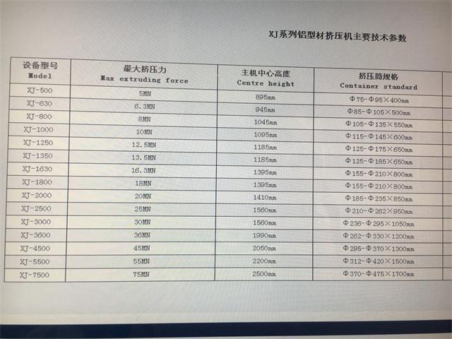 鋁型材擠壓機設(shè)備配置平面如圖1-1,XJ系列鋁型材擠壓機主要技術(shù)參數(shù)如圖1-2